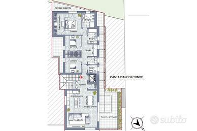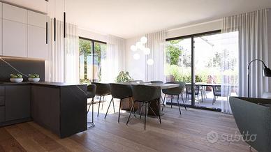 Il reparto notte è composto da due comode camere da letto singole e una spaziosa camera padronale con cabina armadio che si affaccia direttamente su una terrazza, donando carattere all'ambiente. Completano la zona notte un bagno finestrato di generose dimensioni, riservato alla camera matrimoniale, un secondo bagno finestrato con doccia e un comodo studio che può essere utilizzato anche come camera degli ospiti. I pavimenti della zona notte saranno in legno prefinito con strato superiore in legno nobile.
