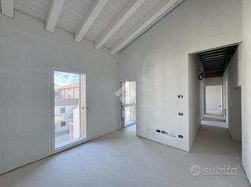 Attico esclusivo in Centro Storico a Cittadella - Vista mozzafiato sulle mura medievali Proponiamo in vendita un meraviglioso attico situato nel cuore del centro storico di Cittadella, con una vista unica sulle mura medievali. L'immobile, sito all'ultimo piano su contesto di sole due unità, è servito da ascensore con chiave elettronica, che consente un accesso diretto all'interno dell'appartamento, garantendo massima privacy e comfort. L'attico si sviluppa con un ampio soggiorno luminoso, con cucina a vista e un elegante soppalco che arricchisce l'ambiente. A completare la zona giorno un pratico servizio igienico con antibagno e una stanza con predisposizione canna fumaria che si presta a più soluzioni quali sala da pranzo, studio o ufficio. La zona notte è composta da una camera matrimoniale con bagno privato, ulteriori due camere e un servizio con doccia. Le ampie porte-finestre e i velux offrono una luce naturale che rende gli ambienti ariosi e piacevoli. Al piano terra, il garage doppio privato fornisce comodo spazio per due veicoli, con sezionale elettrico e attacchi/scarichi acqua per ogni esigenza. Tutti i serramenti sono dotati di triplo vetro garantendo un eccellente isolamento termico e acustico, impianto di riscaldamento a pavimento, raffrescamento canalizzato e sistema VMC dell'aria, per il massimo del comfort in ogni stagione. Travatura a vista laccata bianca, predisposizione per l'impianto d'allarme e di videosorveglianza e possibilità di personalizzazione delle finiture. Una soluzione rara in centro storico, perfetta per chi cerca esclusività, comfort e una vista senza pari. Listini: - 600.000€ allo stato attuale - 650.000€ con impiantistica terminata - 700.000€ finito 'chiavi in mano'