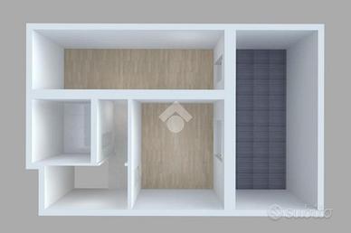 Una scala a chiocciola interna conduce al piano superiore, dove si sviluppa il super attico. Qui troviamo una camera da letto con accesso diretto al terrazzo, un breve corridoio che conduce a un bagno cieco con doccia e una seconda camera, attualmente adibita a ripostiglio, anch'essa con uscita sul terrazzo. Anche in questo caso, gli spazi esterni risultano ampi, riservati e perfettamente abitabili, ideali per momenti di relax.