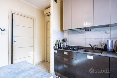 Via Leonardo Da Vinci, recente costruzione signorile del 2006, con riscaldamento autonomo e privo di barriere architettoniche. Ingresso living su zona giorno con cucina a vista, facilmente impostabile grazie alle sue dimensioni e con accesso al terrazzo dotato di tende estive, servizio con box doccia ed accesso al balcone, camera da letto matrimoniale. Finiture dell'immobile di pregio, infissi in doppio vetro, zanzariere su tutte le uscite, impianto di condizionamento e possibilità di usufruire dell'arredamento attuale. Attico sito al secondo ed utimo piano, inserito in un contesto caratterizzato da piccoli condomini in una via molto tranquilla, nei pressi della fermata metropolitana Paradiso. Completano la soluzione cantina di pertinenza e box auto ad €20.000