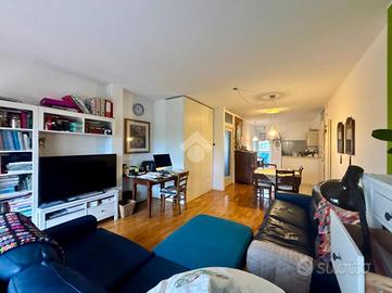La cucina abitabile e arredata modernamente, mentre la zona notte comprende due camere da letto spaziose e un bagno finestrato con doccia servito da terrazzo abitabile.