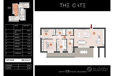 La soluzione proposta è un attico al piano secondo, dotato di ascensore, caratterizzato da un'introvabile zona living di circa 50 mq, tre camere da letto di cui la padronale di oltre 16 mq, due bagni ed un vano tecnico adibito a lavanderia.
