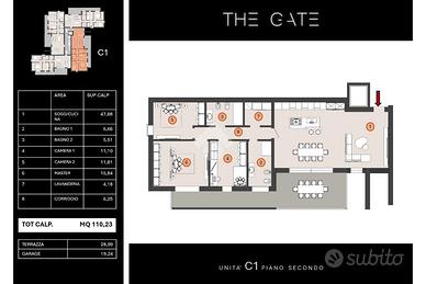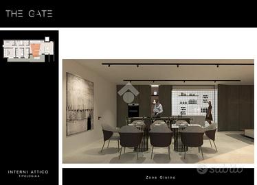 La soluzione proposta è un attico al piano secondo, dotato di ascensore, caratterizzato da un'introvabile zona living di circa 50 mq, tre camere da letto di cui la padronale di oltre 16 mq, due bagni ed un vano tecnico adibito a lavanderia.