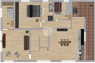 L'appartamento è composto da una luminosa zona giorno, due camere da letto, un bagno finestrato e un comodo ripostiglio.
