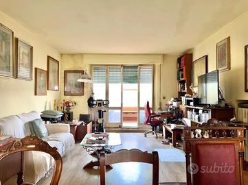 VIALE ELEONORA DUSE In zona residenziale, a due passi da tutti i servizi che propongono i quartieri Campo di Marte e Coverciano, si propone in vendita attico al 7° piano con ampia terrazza abitabile. L'immobile, unico al piano, si distingue per la netta divisione tra zona giorno e zona notte, la zona giorno è composta da cucina abitabile con ripostiglio, sala doppia e bagno con finestra, sia la cucina che la sala doppia hanno accesso alla terrazza abitabile. La zona notte è composta da una camera da letto matrimoniale, un ulteriore bagno con finestra e una stanza adibita a camerina che risulta di passaggio per accedere all'ampia veranda di 17 mq c.a. con accesso diretto sulla terrazza. Completa la proprietà una cantina al piano seminterrato.