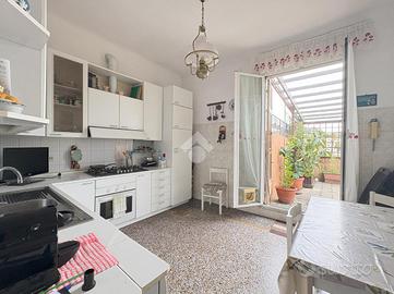 TEL. IN VENDITA ATTICO DI AMPIA METRATURA CON 2 TERRAZZI NEL CENTRO DI SAN FRUTTUOSO Ci troviamo all'inizio di via GB D'Albertis, nelle immediate vicinanze di Piazza Martinez e a tutti i mezzi e le comodità che il quartiere offre. Proponiamo in vendita ampio attico con 2 terrazzi, situato al 6 piano di un palazzo in buono stato di manutenzione, dotato di ascensore. L'immobile si presenta in buono stato ed è suddiviso in 182mq commerciali comprese le aree esterne ed interne. Entrando troviamo subito un ingresso alla genovese tramite porta blindata, che conduce alla prima camera da letto e alla veranda divisa in due stanze con doppia uscita verso il terrazzo. Proseguendo abbiamo il corridoio con le altre due camere da letto matrimoniali di cui una dotata di bagno privato con box doccia ed entrambe con uscita sull'esterno. Troviamo infine, dall'altro lato del corridoio, il soggiorno, la cucina abitabile con porta-finestra e il bagno principale con vasca. I 2 terrazzi sono dotati di impianto elettrico, idraulico e di 3 ampi ripostigli. Sopra il corridoio è presente un sotto tetto calpestabile, utilizzabile come ripostiglio. Contattaci per ricevere più informazioni e/o per programmare una visita di persona! TEL.