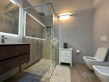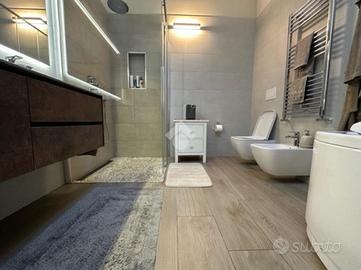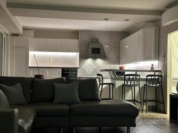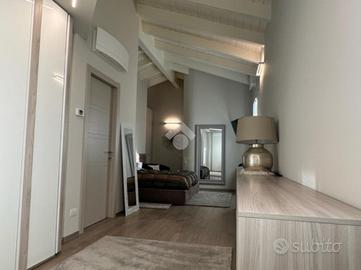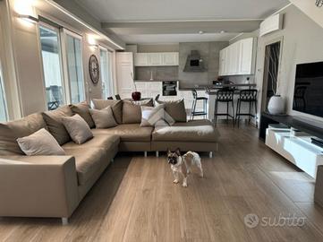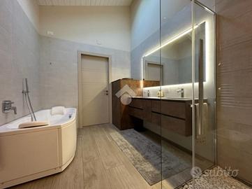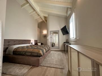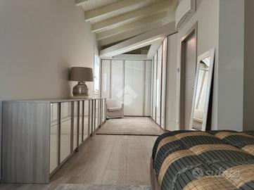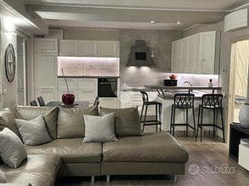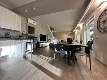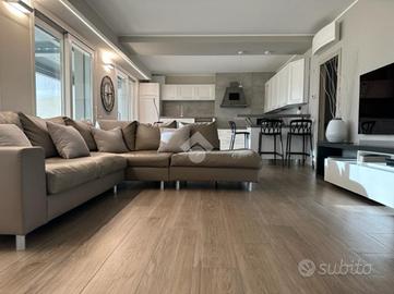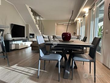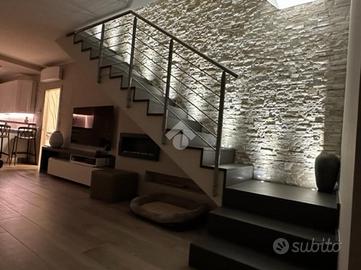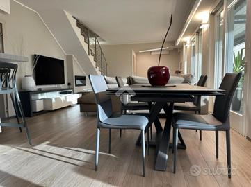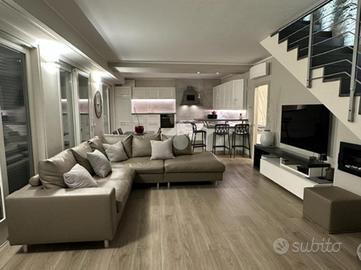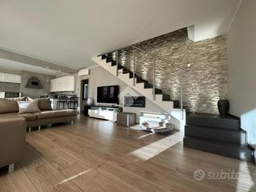 Elegante attico di quattro locali di 160 mq. sito nel centro del paese, disposto su due livelli abitativi con finiture di pregio completo di arredo di pregiato e ricercato design.