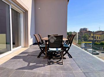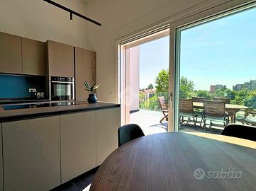 Situato al 2° ed ultimo piano di un edificio moderno, è composto da Ingresso, Soggiorno con Cucina a vista e affaccio su Terrazzo, disimpegno, 3 Camere da letto (di cui una con cabina armadio) e doppi servizi. Completa l'immobile ampia autorimessa di 28mq e Posto auto.