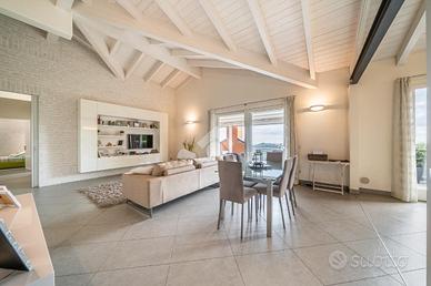 ATTICO PANORAMICO MARANELLO: In una delle posizioni più esclusive e panoramiche di Marnello, proponiamo in vendita uno splendido attico di recente costruzione, unico al piano, libero su tutti e quattro i lati e servito da ascensore all'interno di una palazzina elegante di sole 5 unità. L'immobile gode di una vista impareggiabile sulle colline e sui vigneti circostanti, un vero quadro naturale che si ammira e si vive quotidianamente grazie allo straordinario terrazzo abitabile, ampio e riservato, perfetto per pranzi all'aperto, momenti di relax e convivialità durante gran parte dell'anno. Gli interni colpiscono fin da subito per ampiezza, luminosità e qualità costruttiva. La zona giorno è composta da un salone open space di circa 50 mq, impreziosito da un tetto in legno a vista bianco che conferisce calore ed eleganza agli ambienti, con accesso diretto al terrazzo. La cucina è separabile e abitabile, ideale per chi ama vivere la casa in modo funzionale senza rinunciare allo spazio. A servizio della zona giorno troviamo un bagno per gli ospiti, una lavanderia dedicata e un comodo ripostiglio/guardaroba, perfettamente integrati e ben distribuiti. La zona notte, ben disimpegnata, ospita una camera padronale, un bagno finestrato con moderna doccia walk-in e altre due camere da letto, ideali per famiglia, studio o ospiti. L'attico è inserito in un contesto recente e di alto livello, con finiture di pregio, attenzione al comfort abitativo e al risparmio energetico. L'immobile è infatti in Classe Energetica B, dotato di pannelli termosolari, a garanzia di efficienza e contenimento dei consumi. Una soluzione rara e completa, ideale per chi cerca privacy, vista, qualità costruttiva e comfort moderno, senza rinunciare alla tranquillità e al prestigio della posizione. Contattaci per maggiori informazioni o per prenotare una visita: questo attico va vissuto di persona per essere davvero apprezzato.