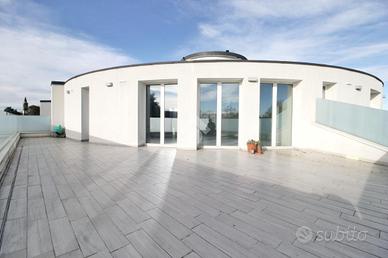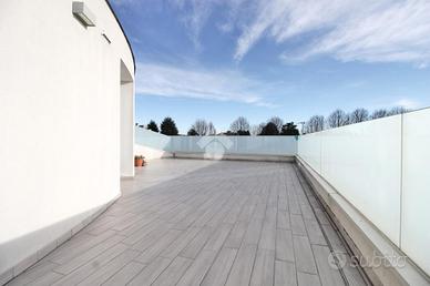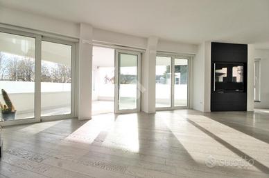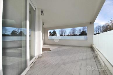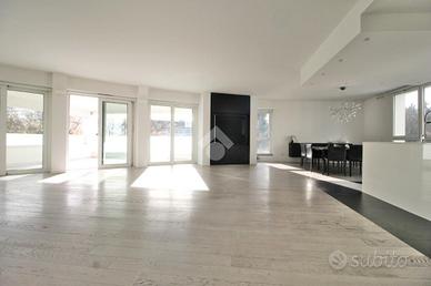 dal living si accede al loggiato di 26 mq, un'oasi privata dove il silenzio e la luce diventano parte della quotidianità.