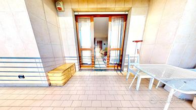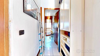 L'appartamento è disposto su due livelli: al piano nono troviamo un ingresso su ampio soggiorno a cui si accede ad un ampia balconata , due camere entrambi con uscita sul balcone , bagno finestrato , disimpegno e scala interna che porta al piano decimo dove troviamo un secondo bagno finestrato , zona cucina living, studio e due terrazzi , uno con esposizione est e l'altro con esposizione ovest , più ampio, accessoriato da ampio tendone rigido anti vento a chiusura ed apertura elettrica.