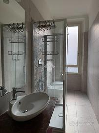 La zona notte è composta da due camere matrimoniali, una delle quali affacciata direttamente sul terrazzo, e da due bagni finestrati, entrambi ristrutturati con cura e materiali contemporanei. Il fascino dell'epoca è perfettamente conservato nella bellissima pavimentazione originale e nei dettagli architettonici che impreziosiscono ogni ambiente. L'appartamento gode di una luminosità naturale straordinaria e di una silenziosità inaspettata, che ne esaltano ulteriormente il comfort abitativo.