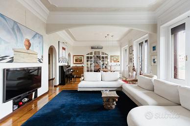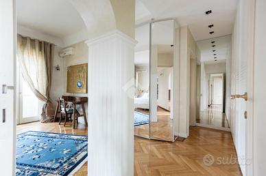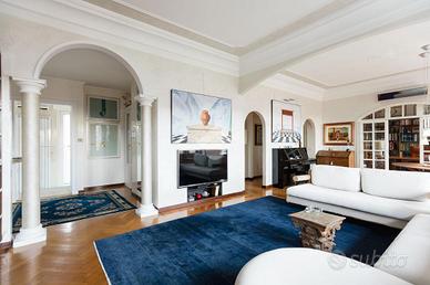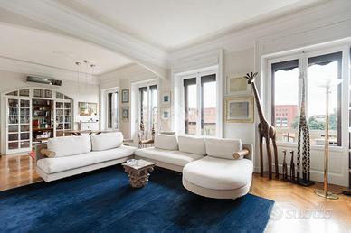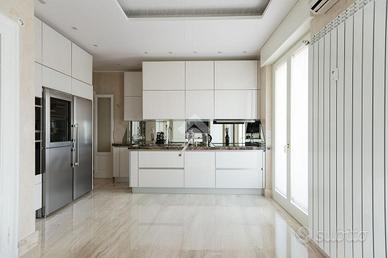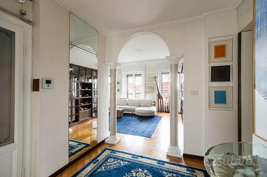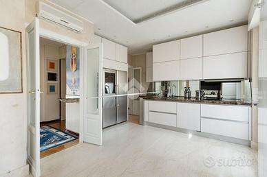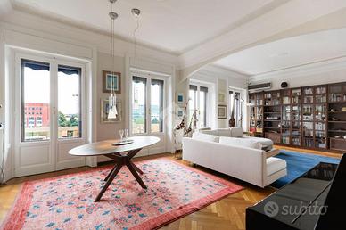 Nel cuore della zona storica di Bicocca, a 100 metri dalla fermata metropolitana lilla M5 Bicocca ed a 150 metri dall'università Bicocca, proponiamo in vendita un esclusivo attico e super attico unico nel suo genere situato in un contesto d'epoca di soli cinque piani. Questa residenza di 257 mq offre un accesso privilegiato tramite ascensore privato. L'attico al quarto piano è nato dalla fusione di due appartamenti ed è composto da un luminoso salone triplo con balcone, studio, suite dotata di balcone e bagno con idromassaggio, cucina abitabile rifinita con piani in marmo di Carrara e balcone, ampia camera da letto e secondo bagno finestrato. Il super attico al quinto piano è composto da cucina, sala relax e ampio bagno con colonna doccia idromassaggio, il tutto collegato al panoramico terrazzo di 150 mq, fantastico spazio ideale per colazione, pranzi e cene in famiglia e non solo, il tutto in totale privacy. Completano la proprietà due cantine di pertinenza ed un box grande. Possibilità di acquisto di ulteriori garage con prezzo a parte. Le finiture di pregio in marmo di Carrara e ceramiche fiorentine per i rivestimenti ed il parquet in tutti gli ambienti rendono ogni dettaglio prezioso. Ogni spazio è dotato di aria condizionata. L'immobile dispone di impianto d'allarme e sistema di videosorveglianza. Questa esclusiva soluzione rappresenta una perfetta fusione di fascino storico e modernità, offrendo un ambiente raffinato e accogliente per vivere al meglio la città. Ottima idea anche come uso ufficio di rappresentanza.