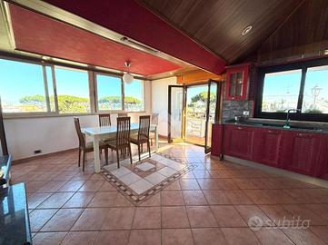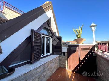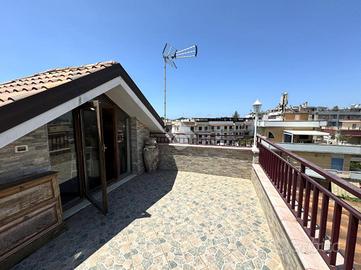 NETTUNO SANTA BARBARA- VIA DEGLI IRIS In un contesto residenziale tranquillo, a pochi passi da tutti i principali servizi e dal mare, proponiamo in vendita un attico di 120 mq, situato al secondo piano di una piccola palazzina sprovvisto di condominio e ascensore. L'immobile ci accoglie con un luminoso soggiorno di circa 40 mq, dal quale è possibile ammirare il promontorio del Circeo grazie alla vetrata panoramica. È inoltre possibile ricavare una seconda camera da letto, sfruttando una parte del soggiorno. Proseguendo, accediamo alla cucina abitabile di c.a.29 mq che, grazie all'esposizione su tre lati, gode di una notevole quantità di luce naturale e di una piacevole vista mare. La cucina è completata da un comodo camino a legna, ripostigli, e l'accesso a due balconi, entrambi dotati di un punto acqua e uno dei quali dotato di lavatrice coperta. La camera matrimoniale, di c.a 17 mq, con affaccio sul balcone, è servita da un comodo armadio a muro finestrato, che rende l'ambiente funzionale e ordinato. I due bagni, entrambi finestrati, sono uno dotato di vasca e l'altro di doccia. Una comoda scala in legno ci conduce al piano superiore, dove troviamo un disimpegno che può essere adibito a zona relax, con la possibilità di ammirare l'effetto delle diverse altezze del soffitto. A completare questo ambiente, alcuni armadi a muro utili per riporre oggetti poco utilizzati. Dalla zona disimpegno, tramite una porta finestra, si accede al terrazzo privato di circa 13 mq, dove si può godere di una splendida vista sulla città di Nettuno, delle montagne e del mare. L'immobile è stato ristrutturato nel 2021 con materiali di pregio, che includono porte di design, portone blindato in vetro e pavimentazione in mosaico. La soluzione è inoltre arricchita da finestre in alluminio su misura, doppio vetro, persiane, zanzariere e tende da sole. L'ufficio è aperto tutti i giorni nei seguenti orari: dal LUNEDI al VENERDI 9.00 - 13:00 e 15:30- 19:30 SABATO 9:00-13:00 e 15:30- 19: