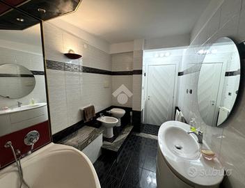 La camera matrimoniale, di c.a 17 mq, con affaccio sul balcone, è servita da un comodo armadio a muro finestrato, che rende l'ambiente funzionale e ordinato. I due bagni, entrambi finestrati, sono uno dotato di vasca e l'altro di doccia.