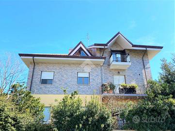 Proseguendo, accediamo alla cucina abitabile di c.a.29 mq che, grazie all'esposizione su tre lati, gode di una notevole quantità di luce naturale e di una piacevole vista mare. La cucina è completata da un comodo camino a legna, ripostigli, e l'accesso a due balconi, entrambi dotati di un punto acqua e uno dei quali dotato di lavatrice coperta.