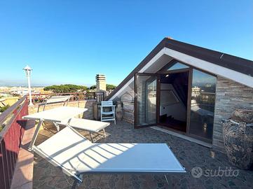 In un contesto residenziale tranquillo, a pochi passi da tutti i principali servizi e dal mare, proponiamo in vendita un attico di 120 mq, situato al secondo piano di una piccola palazzina sprovvisto di condominio e ascensore. L'immobile ci accoglie con un luminoso soggiorno di circa 40 mq, dal quale è possibile ammirare il promontorio del Circeo grazie alla vetrata panoramica. È inoltre possibile ricavare una seconda camera da letto, sfruttando una parte del soggiorno.