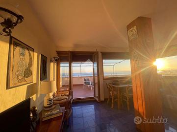 La pavimentazione è realizzata con piastrelle di Vietri color blue, finestre in tutti gli ambienti di nuova generazione vasistas in pvc effetto legno chiaro, bagno piastrellato con ceramiche multicolor che ben si combinano con la pavimentazione, condizionatore nel salone e nella camera da letto.