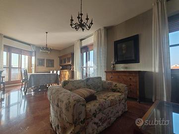 OPERA - In contesto signorile nel cuore del paese, proponiamo in vendita in esclusiva attico di circa 150mq con terrazzo al piano dal quale si possono ammirare ampie vedute e godere di momenti piacevoli da passare in famiglia e con gli amici in completa tranquillità. La soluzione è composta da ingresso nel disimpegno che collega a destra la cucina abitabile con accesso al balcone privato, a sinistra troviamo il soggiorno doppio perfetto sia per i momenti di convivialità, sia per pranzi e cene con tanti ospiti. Dalla zona giorno, si accede al terrazzo al piano di circa 115 mq. Il disimpegno conduce alla zona notte, ben distribuita, composta dalle due ampie camere matrimoniali dalle quali è possibile accedere al secondo balcone comunicante. I doppi servizi finestrati si completano uno con la vasca da bagno e l'altro con la doccia. Completa la soluzione abitativa un ampio ripostiglio ideale per tutti gli accessori di casa. Questa abitazione si presta ad essere trasformata in un quattro locali con dehors con una serra bioclimatica sul terrazzo. Naturalmente per avere tutto ciò occorre prevedere una ristrutturazione con progetto che includa la terza camera da letto, la cabina armadio ed eventualmente il terzo servizio. L'appartamento è dotato di aria condizionata e di tapparelle motorizzate per un maggiore comfort. Sono stati deliberati i lavori per il rifacimento del terrazzo che inizieranno a breve. Al piano interrato sono presenti la cantina e il box di proprietà compresi nel prezzo. Vi invitiamo a contattarci per prenotare una visita guidata a questa soluzione ideale per chi cerca una casa ampia, sicura, luminosa e riservata senza rinunciare ai servizi che il paese offre.