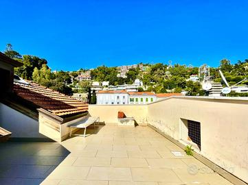 L'appartamento si sviluppa su due livelli collegati da eleganti scale interne. Al piano terra si trovano un ingresso, una camera da letto, un bagno e un comodo ripostiglio. Al piano superiore, invece, prende vita la zona giorno: un ampio soggiorno con cucina a vista, una seconda camera da letto, un ulteriore bagno e l'accesso diretto al terrazzo panoramico che garantisce una abbondante luminosità naturale durante l'arco della giornata.
