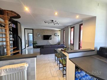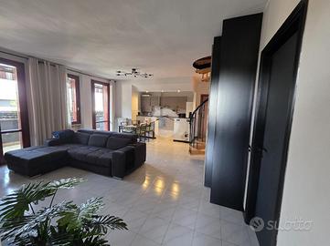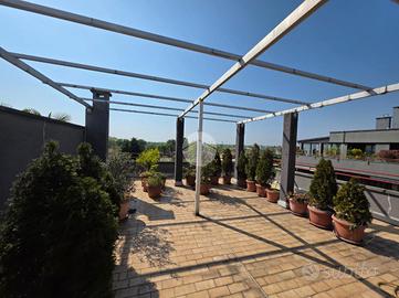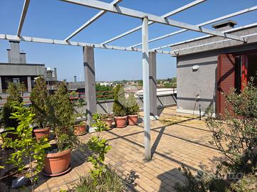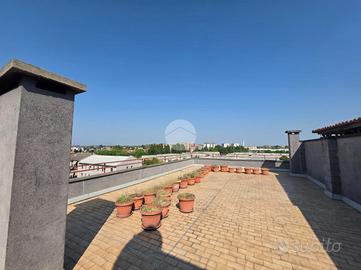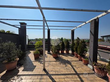 La PARTICOLARE soluzione che qui vi presentiamo in vendita è ubicata all'ULTIMO PIANO di un contesto condominiale di 6 piani, dotato di ascensori e riscaldamento autonomo, ed ubicato nella frazione di Cassina Amata di Paderno Dugnano. La zona di ubicazione è adiacente al centro della frazione: abbiamo negozi ed attività commerciali entro 200 metri, fermata del trasporto pubblico verso M3 Comasina a 500 metri, il parco Spinelli raggiungibile comodamente a piedi e la stazione ferroviaria di Palazzolo Milanese a c.a. 1.5 km. Concepito nel progetto iniziale come 4 locali su due livelli, è stato acquistato e reso a 3 locali dall'attuale Proprietà, che ha incorporato la terza stanza al soggiorno. Attualmente pertanto, gode di spazi abitativi così distribuiti: PIANO 5: 100 mq.: qui troviamo l'ingresso alla casa, una zona giorno molto ampia con cucina abitabile aperta sul soggiorno doppio ed accesso alla prima pertinenza esterna di c.a. 8 mq. Abbiamo inoltre un bagno padronale finestrato e corredato di vasca ed una prima camera da letto matrimoniale, con accesso anch'essa ad una seconda pertinenza esposta ad Ovest. E' inoltre presente un ripostiglio interno. Una scala a chiocciola ci dà accesso al PIANO 6: qui troviamo una seconda camera matrimoniale di 20 mq. con pavimentazione in parquet ed un bagno corredato di doccia ed aspirazione forzata. Al piano godiamo inoltre di un ESCLUSIVO TERRAZZO PRIVATO DI BEN 180 METRI QUADRI libero su 3 lati. La soluzione è dotata di cantina e BOX SINGOLO NEL PREZZO; vi è la possibilità di acquisto di un secondo BOX singolo (Euro 20.000). Il sistema di riscaldamento è autonomo e le spese di gestione ordinaria sono di c.a. Euro 2.000/annui. La consegna dell'immobile è prevista per FEBBRAIO 27, stante il contratto di locazione ancora in essere.
