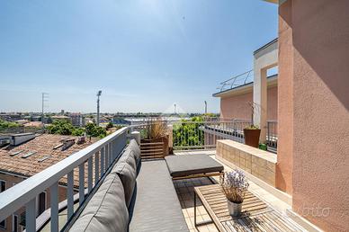 Attico esclusivo completamente ristrutturato Situato nel cuore di una delle zone più verdi e strategiche della città, vicino al centro storico e al parco Cittadella, proponiamo in vendita un magnifico attico completo di arredi e con vista privilegiata su Parma. L'immobile, immediatamente abitabile, è il risultato di una ristrutturazione totale e si distingue per l'eccellenza delle finiture, l'impronta moderna del progetto e una distribuzione degli ambienti studiata con grande cura. La zona living si sviluppa in un unico spazio luminoso e accogliente: cucina open space, area pranzo e soggiorno si integrano alla perfezione, valorizzati da ampie vetrate che collegano direttamente all'esterno. Il terrazzo abitabile, che circonda l'intera abitazione, non è un semplice spazio aperto, ma un'estensione naturale della casa, ideale per mangiare all'aperto o rilassarsi in totale tranquillità. Tutte le camere affacciano sul terrazzo, assicurando un costante apporto di luce e una continuità armoniosa tra interni ed esterni. La zona notte comprende una camera padronale con bagno in suite e cabina armadi, una camera doppia, una singola e un secondo bagno. A completare la proprietà, uno studio dotato di ripostiglio e area lavanderia. Tra le dotazioni: impianto di ventilazione meccanica controllata, sistema d'allarme, illuminazione e arredi di design. La proprietà è inoltre completa di garage e cantina. Una proposta rara, ideale per chi desidera un'abitazione contemporanea e raffinata, con ampi spazi esterni panoramici e tutta la comodità dei servizi cittadini a portata di mano. Per maggiori informazioni o prenotare un appuntamento contattare Patrizia ai numeri /481514