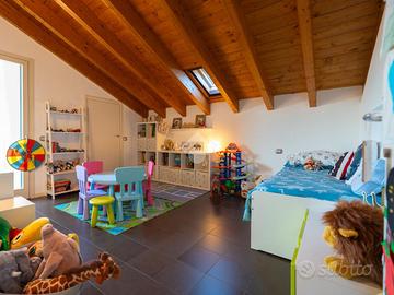 Inoltre l'abitazione è dotata di: riscaldamento autonomo a pavimento, aria condizionata, infissi in legno (doppio vetro con camera d'aria), zanzariere, tapparelle elettriche e finiture di pregio.