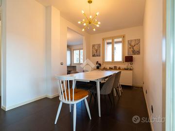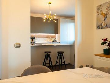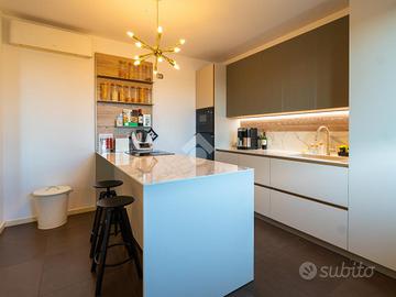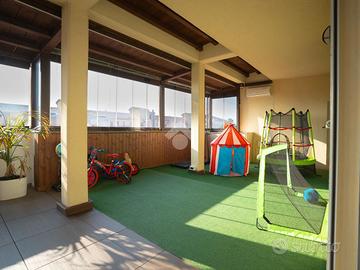 L'immobile in questione è collocato all'ultimo piano, sviluppato su una metratura complessiva di circa 180 mq distribuiti in modo razionale e funzionale. L'ingresso apre su un ampio disimpegno, elegantemente attrezzato con armadiature su misura adibite a guardaroba e scarpiera. Successivamente troviamo la zona living composta da: soggiorno molto luminoso con accesso al terrazzo principale e ad un secondo terrazzo, sala da pranzo, cucina abitabile con ampia penisola e servizio finestrato (dotato di box doccia e angolo lavanderia). Nella zona notte troviamo due camere da letto matrimoniali dotate di cabina armadio e balcone privato, cameretta singola e servizio finestrato (dotato di vasca e doccia).