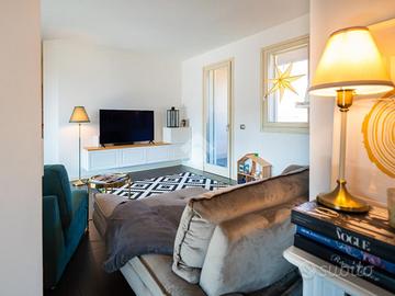 Attico arredato con ampio terrazzo.