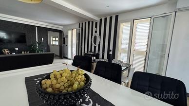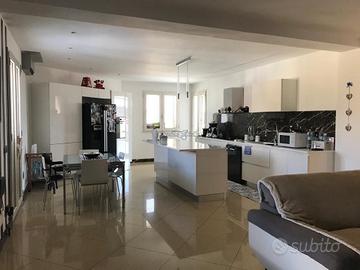 Tutti gli infissi sono a taglio termico con doppio vetrocamera per garantire comfort abitativo durante tutto l'anno. Dalla zona giorno si accede ad una terrazza coperta di circa 60 mq arredata con pergola in legno, completa di cucina in muratura e barbecue: il luogo perfetto per cene all'aperto o semplicemente per godere della vista sulla città.