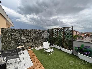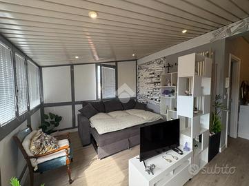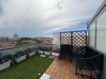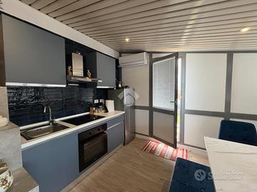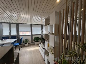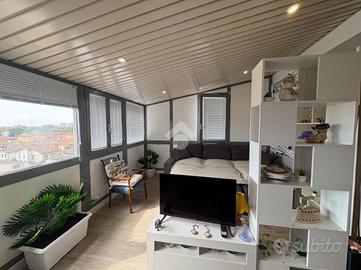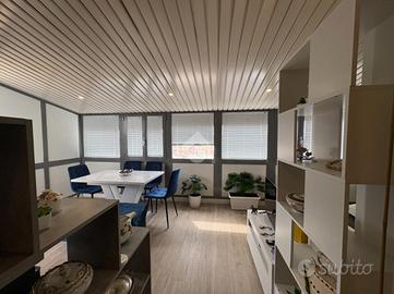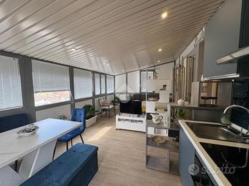 RAVENNA zona SAN BIAGIO:Attico al sesto piano servito da ascensore fino al quinto ,ristrutturato nel 2024, libero su quattro lati, con terrazza che affaccia sulla cupola della basilica san Vitale. Questo appartamento destinato principalmente a single, coppie o chi è in cerca di tranquillità, è composto e diviso da due ambienti strutturali, uno in muratura ed uno in veranda in alluminio condonata e coibentata. Entrando vi è un ampio spazio, che potrebbe essere adibito a soggiorno. Sulla destra è presente bagno finestrato con doccia spaziosa e comoda seduta. L'acqua calda è servita da boiler elettrico a risparmio energetico. A seguire un vano camera anch'esso con finestra e con letto a castello. Proseguendo si arriva alla parte verandata, la quale si distingue per luminosità e vista. Questa zona ospita da un lato il soggiorno, che può essere utilizzato anche come zona notte grazie alla presenza di un divano letto, dall'altro lato l'angolo cottura e la zona pranzo. Con accesso dalla veranda, il punto forte dell'attico: la terrazza di proprietà che, oltre all'affaccio panoramico sulla città, mette d'accordo sia chi cerca relax e tranquillità e chi cerca la comodità dei servizi del centro. Conclude il tutto una comoda cantina di proprietà a livello strada per parcheggiare anche più di una moto o bici. Il riscaldamento condominiale è irradiato da 4 termosifoni presenti nell'appartamento. L'assenza di gas offre un ulteriore risparmio.