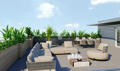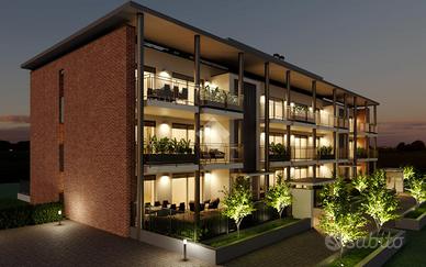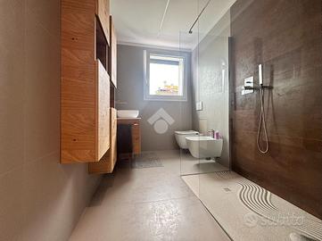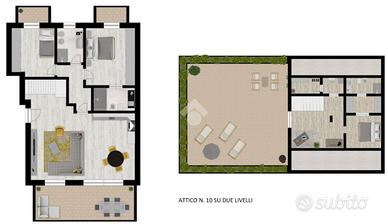 In una nuova ed elegante palazzina con ascensore in fase di costruzione e che ospiterà 12 famiglie. L'attico si sviluppa su due livelli abitativi, il piano principale presenta un'ampia zona living, due camere da letto e due bagni. Il piano è completato da un terrazzo privato, accessibile dalla zona giorno, insieme ai due balconi delle camere; spazi perfetti per socializzare o godere di momenti di relax in totale serenità. Una comoda scala interna conduce al piano superiore, dove si trova un ampio ambiente open space da dividere in base alle proprie esigenze, completo di un bagno/lavanderia oltre ad un grande ed esclusivo terrazzo di circa 70 Mq. Completo di cantina e box doppio. L'attico rappresenta una soluzione abitativa esclusiva in grado di soddisfare le esigenze di chi cerca eleganza e modernità in un contesto residenziale di prestigio. L'unità abitativa è personalizzabile e, oltre ad avere un'ampia scelta di capitolato, sarà dotata di: - riscaldamento a pavimento alimentato da pompa di calore autonoma per ogni singola abitazione - aria condizionata - infissi in PVC con vetri antisfondamento basso emissivi e camera gas Argon - avvolgibili motorizzati in alluminio - murature perimetrali ad alto isolamento termico e acustico - impianto fotovoltaico autonomo. La combinazione di materiali di prestigio, gli impianti di ultima generazione e le innovative tecniche costruttive consentiranno il raggiungimento della CLASSE ENERGETICA 'A4'. Consegna prevista settembre 2026.