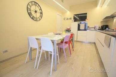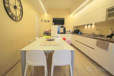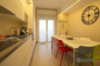 La cucina è abitabile, grazie alla sua metratura consente di pranzare comodamente al proprio interno, anch'essa con porta finestra che permette di uscire sul secondo balcone.