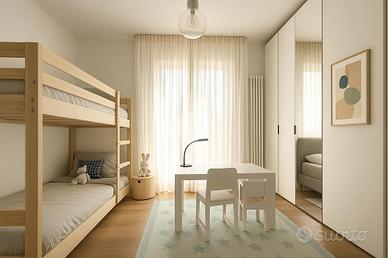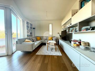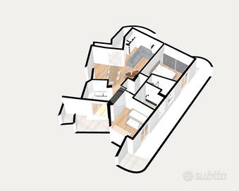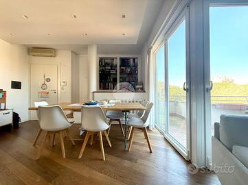 Anche qui troviamo un terzo bagno, oltre a un terrazzo riservato di circa 23 mq, da cui si può godere una vista aperta e un'esposizione luminosa e ariosa.