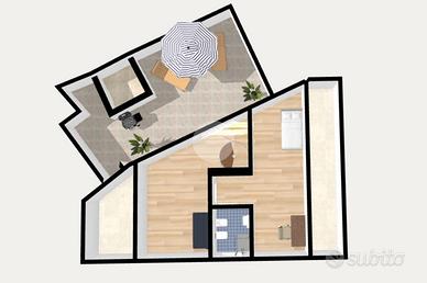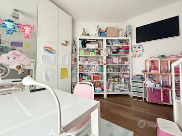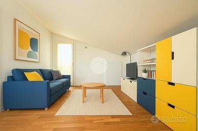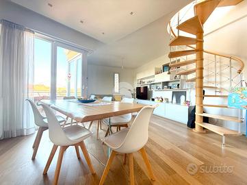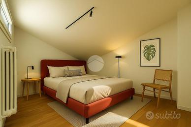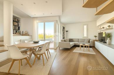 Al piano superiore, collegato da scala interna, si sviluppa un ampio open space mansardato, pensato per adattarsi a molteplici esigenze: studio, zona relax, area creativa o terzo ambiente living.