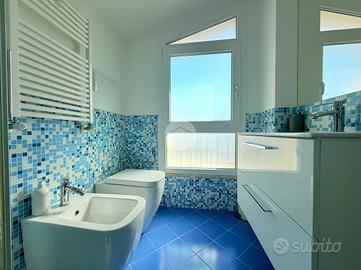 L'ingresso si apre su un'ampia zona living, accogliente e ben proporzionata, in cui il soggiorno gode dell'uscita diretta su un terrazzo abitabile di circa 15 mq, perfetto per pranzi all'aperto, serate rilassanti o semplicemente per godersi la brezza del mare in totale privacy.
