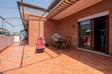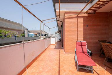 Cerchi un Attico nella fascia centrale di Ostia? Desideri un ampio terrazzo con un affaccio gradevole ed un'ottima esposizione? Abbiamo la soluzione giusta per te! In Via Corrado del Greco, zona Carlo Marenco di Moriondo - Isole del Capo Verde, proponiamo in vendita un 4locali al piano Attico di una palazzina in cortina molto signorile, con cantina di pertinenza. L' Attico gode di un affaccio esterno con esposizione Sud - Ovest ed ha un terrazzo di oltre 50 mq. L'immobile al suo interno risulta così composto. Saliti all'ultimo piano, mediante l'ascensore, e varcata la porta di accesso della casa, veniamo subito accolti nell'ampio salone quadrato di circa 38 mq. Qui possiamo trovare un delizioso camino a legno ed un comodo ripostiglio, quest'ultimo situato alla sinistra dell'ingresso. Alla destra del salone invece un disimpegno conduce dapprima alla cucina abitabile di oltre 12 mq, e a seguire alla zona notte, composta da due camere da letto, una delle quali con bagno di servizio interno, una camera studio, e l'ampio bagno patronale con piatto doccia e finestra. Tutti gli ambienti di casa, ad eccezione della cameretta, presentano l'accesso diretto all'ampio spazio esterno. L'immobile si presenta in ottimo stato con elementi di pregio come la pavimentazione in Parquet Doussie Africa. Completa la proprietà una cantina di 4 mq annessa al prezzo di vendita. La zona dove è ubicato l'Attico è molto richiesta grazie alla vicinanza alla Pineta di Ostia e a tutti i servizi principali.