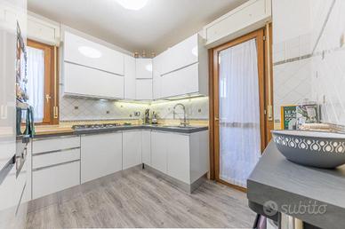 Al piano attico, l'ingresso si apre su un'ampia zona living, impreziosita da un elegante salone con accesso diretto a un gradevole terrazzino, dotato di una chiusura con vetrate Crystal, ideale per godere di uno spazio esterno vivibile in ogni stagione. La cucina, separata e abitabile, si affaccia su un balcone di servizio.