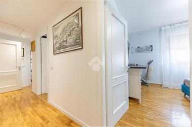 All'interno di un complesso residenziale in cortina, edificato nel 2010 e immerso nel verde e nella tranquillità della zona Cinquina, proponiamo in vendita un esclusivo attico e superattico finemente ristrutturato nel 2018.