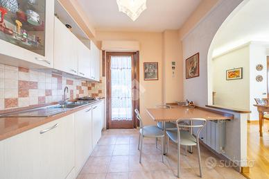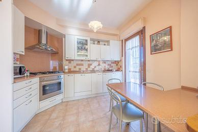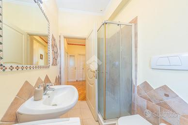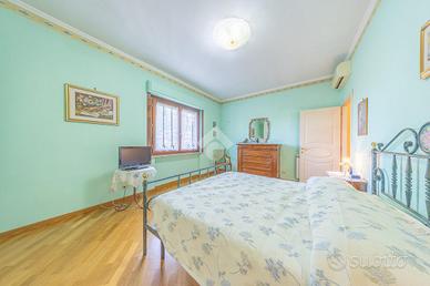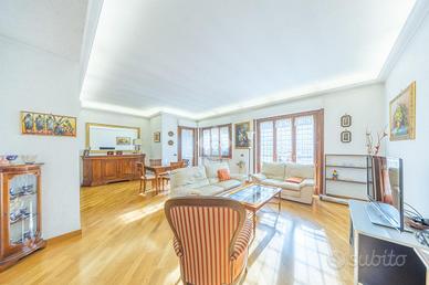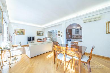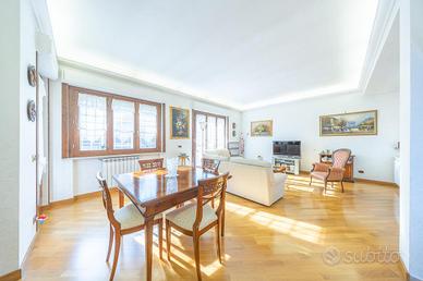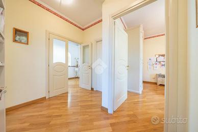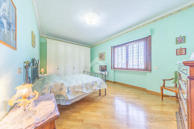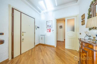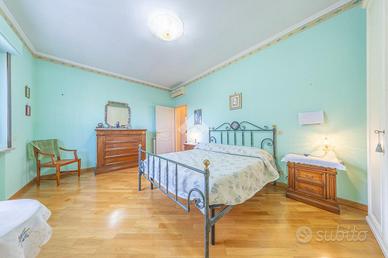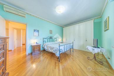 La zona notte è ben organizzata e comprende due camere matrimoniali, di cui una con balcone privato, oltre a due bagni e un pratico ripostiglio, anche se l'ampia metratura permetterebbe facilmente di realizzare una terza camera da letto.