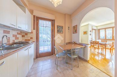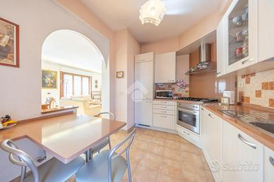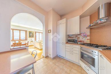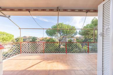 L'ingresso si apre su un comodo disimpegno che accompagna all'enorme soggiorno, luminosissimo grazie alle tre porte finestre che filtrano luce naturale per tutto l'arco della giornata. La cucina, separata ma a vista, rimane funzionale e perfettamente integrata nella zona living. Da entrambi gli ambienti si accede al magnifico terrazzo perimetrale, un vero e proprio prolungamento della casa, ideale per pranzi, cene all'aperto e momenti di relax con vista panoramica e affaccio libero.