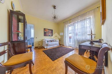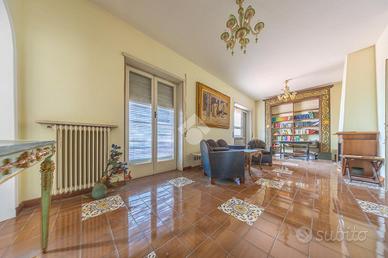 Internamente l'appartamento è composto da ingresso, salone di rappresentanza con camino, cucina abitabile, due camere da letto matrimoniali e doppi servizi entrambi finestrati.