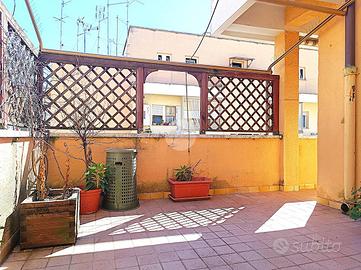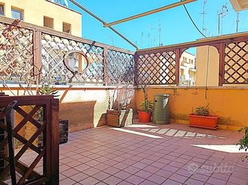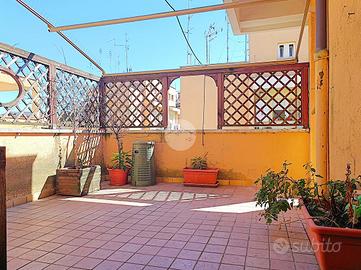 Orgoglio di questo appartamento, sul quale far fantasticare la propria mente libera e far palpitare il cuore con le più diverse emozioni, è il terrazzo: scene di cenette intime sotto il cielo di Roma o una poltrona e un drink per rilassarsi al chiaro di luna o ancora letture, esercizi fisici all'aperto, giochi con il proprio cane o cura delle proprie piante. Uno spazio esterno importante permette di concretizzare desideri, sorrisi ed anche ritagliarsi uno spazio dalla frenesia quotidiana.