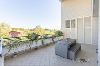 Il vero punto di forza della casa è il grande terrazzo abitabile, ideale per momenti di relax, con affaccio sul verde.