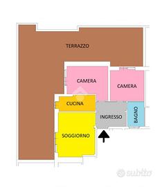 Unico nel suo genere è composto da un grande ingresso, uno spazioso e luminoso soggiorno adiacente alla cucina abitabile, due camere da letto e bagno, con doccia, dotato di finestra.