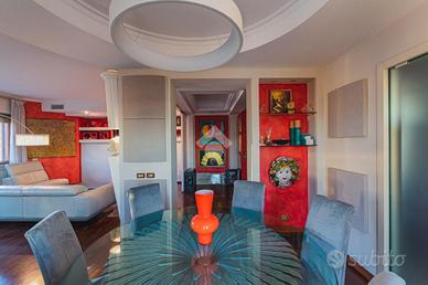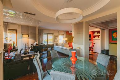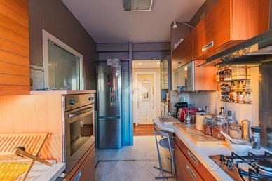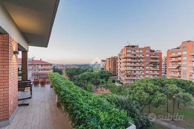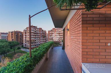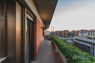 * E. U. R. CENTRO - VIALE CESARE PAVESEAPPARTAMENTO RISTRUTTURATO - ULTIMO PIANO - TERRAZZO ABITABILE - BOX AUTO Nel quartiere E. U. R., precisamente in Viale Cesare Pavese, proponiamo in vendita esclusiva un appartamento sito all'ottavo ed ultimo piano finemente ristrutturato. La soluzione si trova all'interno di un'elegante palazzina in cortina, anch'essa recentemente ristrutturata, ed è così composta: ampio ingresso, salone triplo con ampio terrazzo abitabile adiacente, cucina abitabile, tre camere da letto di cui due matrimoniali, tre bagni di cui due finestrati. Completano la proprietà una cantina asciutta e comoda ed un ampio box auto, entrambi compresi nel prezzo. Lo stabile è dotato di servizio di portineria. La soluzione si presenta in ottimo stato interno essendo stata recentemente ristrutturata con finiture di alto pregio e tutte le intercapedini delle pareti esterne sono state riempite di materiale isolante con insufflaggio. Tale operazione ha portato l'immobile a raggiungere la classe energetica "C". Inoltre si sottolinea il fatto che l'immobile sia un ultimo piano sotto tetto e non sotto solaio o lastrico solare con tutti i benefici che comporta a livello di coibentazione. L'appartamento è molto silenzioso e ciò è garantito dal piano alto e dai due affacci interni sul verde. Il parco sul quale affaccia l'immobile, compreso tra Via E. Vittorini e V.le C. Pavese verrà riqualificato con progetto già approvato in comune. La posizione strategica dell'immobile, la vicinanza alla fermata metro, al centro commerciale , alle vie dello shopping e a tutti i principali servizi lo rendono estremamente confortevole per un uso residenziale.