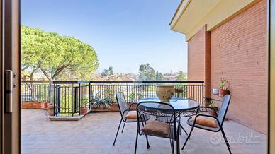 Via Lorenzo Rocci, signorile comprensorio, attico e superattico con tripli ingressi: Piano attico - Salone doppio con camino, cucina, sala da pranzo, due camere matrimoniali, armadi a muro, due bagni di cui uno ensuite e terrazzi di 70 mq. Superattico - Ampio living, camera, bagno e ingresso indipendente. Completano la proprietà box auto e cantina. La nostra agenzia si trova a Largo Alberto Pepere 12 - 00151 Roma. Per qualsiasi informazione siamo operative dal lunedì al venerdì 9 - 13; 15:30 - 19:30 e il sabato 9 - 13.