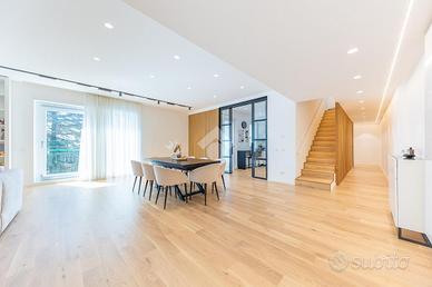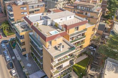 Nel cuore di Talenti proponiamo in vendita un lussuoso attico e superattico di circa 230 mq (c.a) interni e 230 mq di terrazzi, un angolo di paradiso urbano che combina comfort ed eleganza. Gli interni sono finemente ristrutturati con materiali di pregio e tecnologie di ultima generazione, vi è anche la possibilità di un doppio ingresso indipendente. L'immobile colpisce per l'ampiezza e la luminosità degli ambienti, a partire dal prestigioso salone di circa 60 mq con arredi di design realizzati su misura, affiancato da una cucina esclusiva, separata da un'elegante porta in vetro e dotata di elettrodomestici di ultima generazione. La zona notte è composta da tre bagni, di cui uno di servizio per gli ospiti, tre camere da letto, tra cui una suite matrimoniale con bagno privato e armadio su misura a 7 ante, una comoda cabina armadio e una zona lavanderia, garantendo comfort e funzionalità per tutta la famiglia. Il vero valore aggiunto della proprietà sono i tre ampi terrazzi che circondano l'abitazione, perfetti per vivere gli spazi esterni in totale privacy. Al piano superiore, troviamo una camera, un bagno e uno splendido terrazzo panoramico con piscina e doccia che rendono l'ambiente esclusivo, ideale per momenti di relax o per accogliere ospiti. Completano la proprietà una cantina ed un box auto dotato di sistema di ricarica per veicoli elettrici. Una soluzione unica nel suo genere, ideale per chi desidera spazi importanti, comfort e un'abitazione di grande rappresentanza nel cuore di Talenti. La proprietà è dotata di: -telecamere di video sorveglianza -sistema di allarme laser perimetrale -pannelli fotovoltaici -piscina panoramica -aria condizionata canalizzata -impianto di domotica che consente di gestire gli apparecchi all'interno dell'appartamento da remoto Le presenti informazioni non costituiscono elemento contrattuale. Per maggiori informazioni e per prenotare un appuntamento sul posto contattate la nostra agenzia ai seguenti recapiti: Tel.