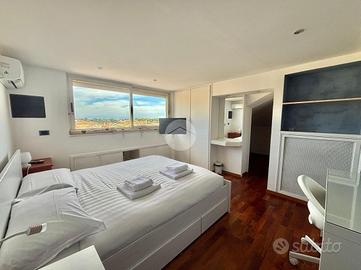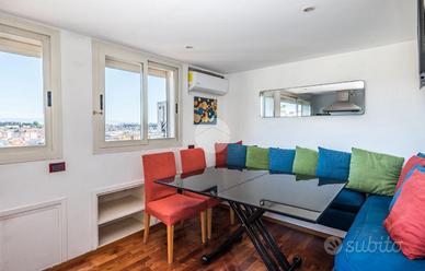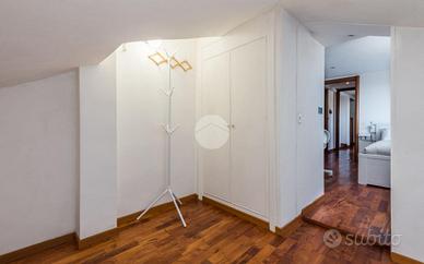 Attico trilocale, in un contesto tranquillo e ben collegato. L'immobile si distingue per la luminosità e gli spazi ben distribuiti. L'ingresso si apre su un ampio living moderno, caratterizzato da una zona relax accogliente e una cucina a vista con penisola e una grande finestra luminosa con vista, ideale sia per la vita quotidiana che per momenti conviviali. La zona notte è composta da una camera da letto matrimoniale con cabina armadio e una cameretta singola, entrambe ben proporzionate e silenziose, ideali sia come camere matrimoniali che come stanza per ospiti o studio. Il bagno, rifinito con gusto, è dotato di doppio lavandino e ampia doccia, offrendo comfort e funzionalità. Ha inoltre anche un ampio ripostiglio che può essere utilizzato anche come lavanderia Completa la proprietà un piacevole terrazzino, uno spazio esterno riservato che rende l'attico ancora più vivibile e ricercato.
