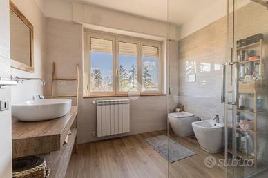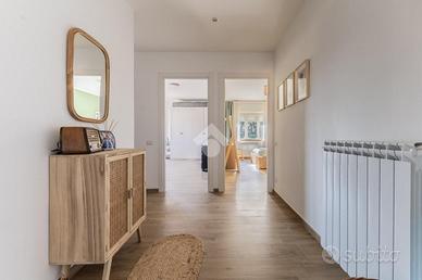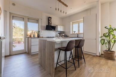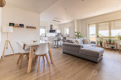 In zona urbana, a pochi passi dal centro storico e dai principali servizi, proponiamo in vendita un appartamento accuratamente ristrutturato in stile moderno, situato all'ultimo piano. L'immobile si distingue per l'ottima esposizione, presenta spazi interni comodi e funzionali e gli affacci esterni di casa garantiscono di fruire della luce naturale durante l'arco della giornata. L'appartamento è composto da zona giorno con ingresso, ampia zona living con cucina a vista ed uscita sul terrazzo; mentre la zona notte è ripartita in camera matrimoniale, seconda camera collegata al terrazzo sul retro, sgabuzzino e doppi servizi (nello specifico un bagno con doccia ed uno con vasca). Il terrazzo principale di casa inoltre vanta una visuale panoramica sul centro storico di Ronciglione, che consente di scorgere perfino il monte Soratte che si profila all'orizzonte oltre i tetti del borgo. Completano la proprietà un posto auto scoperto ed una cantina. L'abitazione è la scelta ideale per coppie e famiglie alla ricerca di un'abitazione moderna, luminosa e pronta da vivere, in una zona in prossimità dei servizi pensata per il comfort quotidiano.